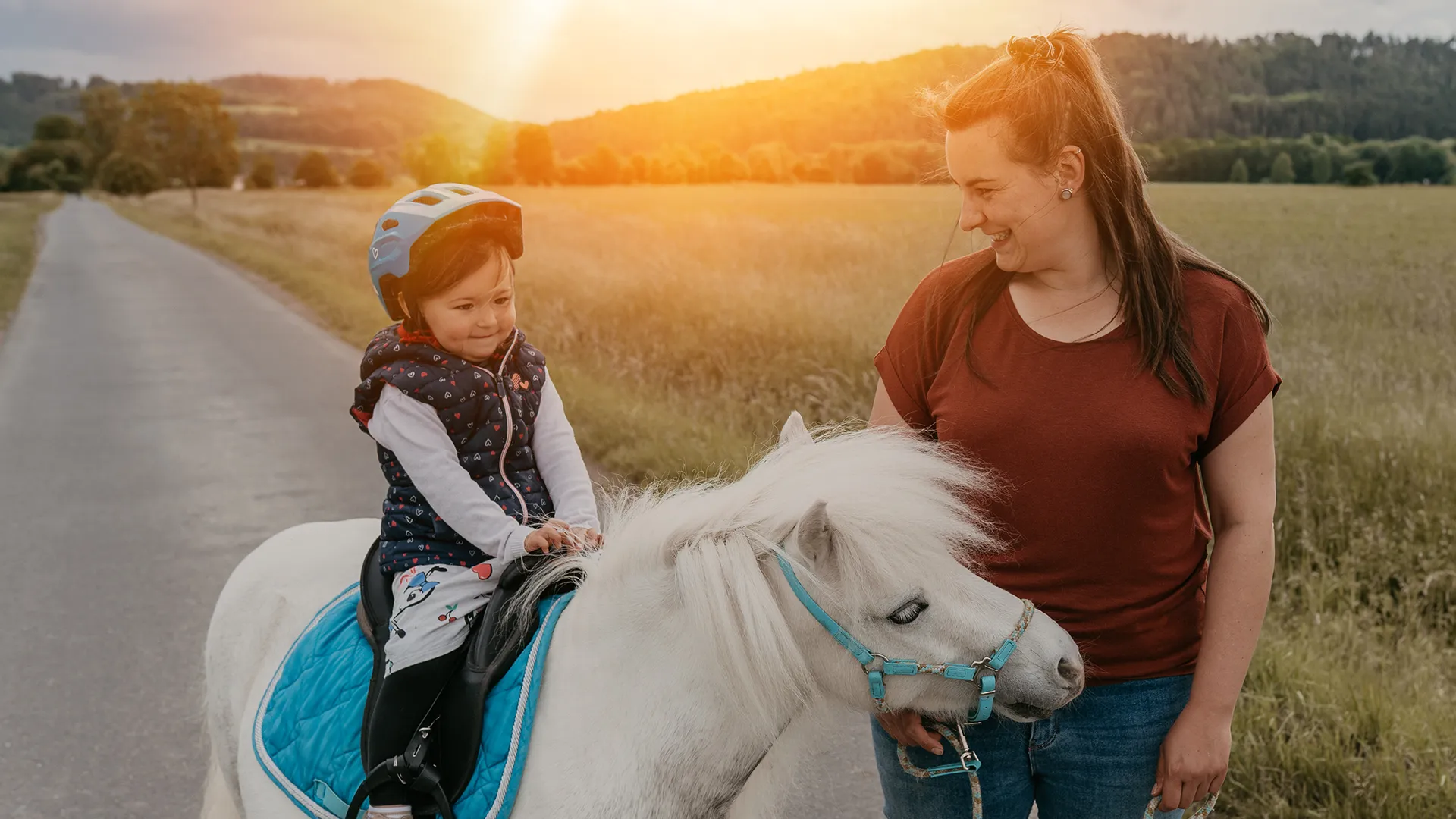 Entdecken Sie mit unserem „PONY TO GO“-Angebot die Freiheit, unser malerisches Gelände auf eigene Faust zu erkunden. Leihen Sie sich ein Pony oder Pferd aus und genießen Sie eine private, geführte Schritttour durch die idyllische Landschaft rund um unseren Stall. Sie führen und Ihr Kind sitzt auf – ein unvergessliches Erlebnis nur für Sie und Ihr Kind.
