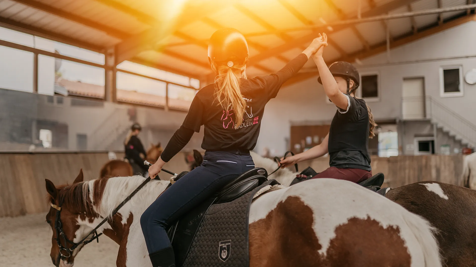 können gemeinsam in unserer Pferdezeit die Grundlagen des Reitens erlernen und machen erste Schritte im Trab und Galopp auf unseren größeren Pferden. Auch hier bieten wir einen spannenden Mix aus Theorie und Praxis – perfekt für Kinder und Teenager, die ins Reiten einsteigen möchten.